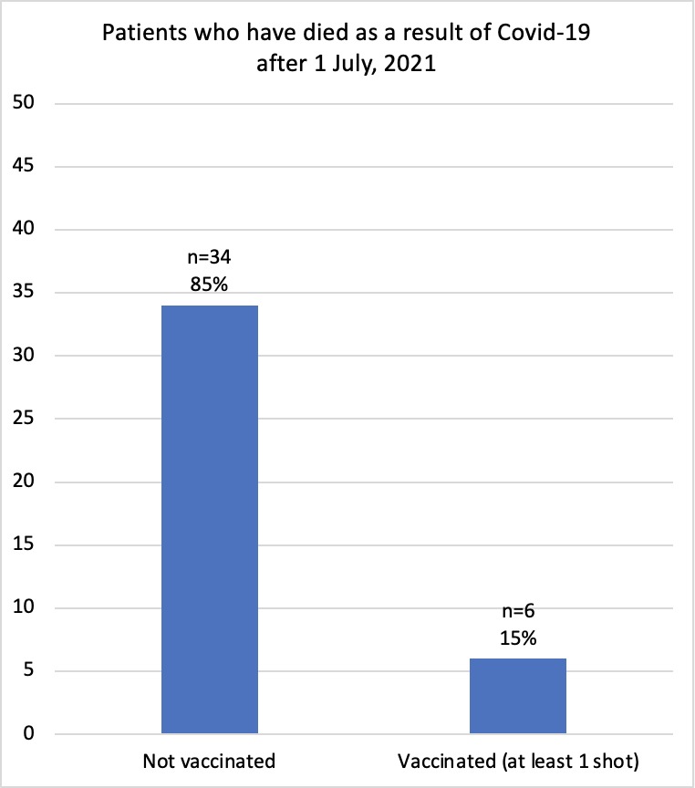 For di comienso di juli cu DELTA a haci su introduccion na Aruba por observa cu lamentablemente 40 persona a perde e bataya contra e virus di COVID-19 di cual 6 tabata vacuna y 34 no tabata vacuna.