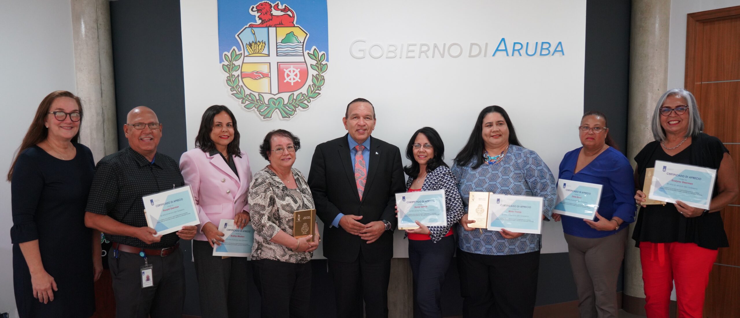 Pa finalisa Minister Endy Croes a sigui bisa cu e tabata un momento di aprecio. Cu hopi honor e mandatario a un obsekia un detaye personalisa cu nan nomber graba como un recuerdo bunita di aprecio pa nan trabou, pasion, dedicacion y nan amor cu nan a inverti den Enseñansa di Aruba. Di curason hopi pabien na cada un di bosonan!