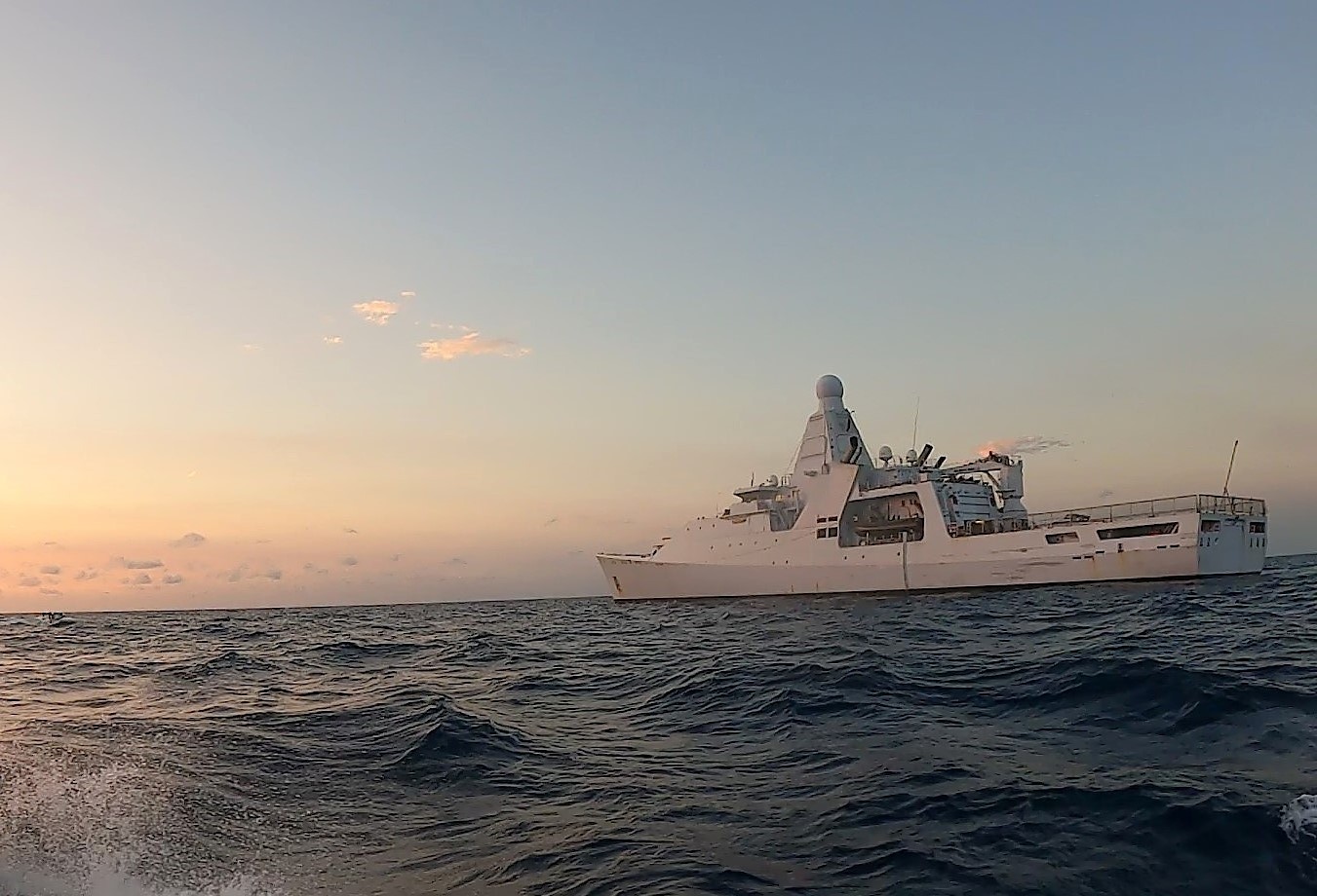 E barco di marina Zr.Ms. Friesland recientemente a logra para un boto di piscado Venezolano sospechoso riba laman grandi. E contacto a keda descubri pa un avion di patruya di US Coast Guard. E boto tabata riba un ruta conoci pa contrabanda despues di cual e barco Friesland a keda dirigi pa controla e boto.