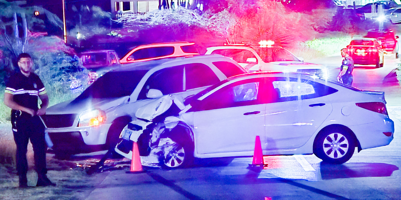 E patruya cu a yega na altura di Tamarijn 54, a bin topa cu un auto y un vehiculo. Tabata trata di un vehiculo tipo SUV, esta Chevrolet Equinox color blanco, y un auto sedan Hyundai Accent color blanco.