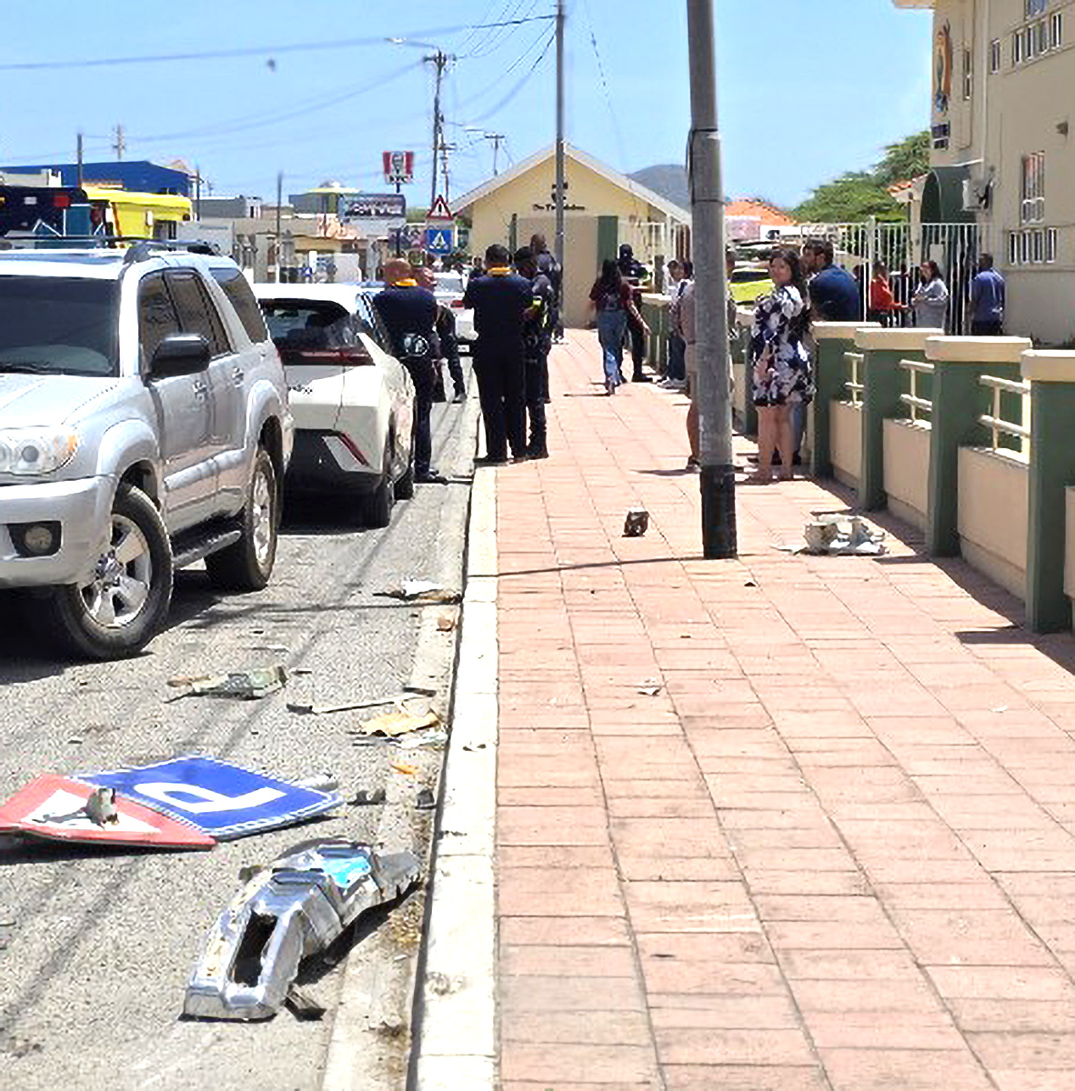 Paramediconan trahando: E testigonan a bin topa cu e chauffeur no ta reaccionando, y mesora pa 11:54 am e yamadanan a cuminza drenta na Central di Polis. Hendenan a informa di e accident, y cu e chauffeur lo a bira malo y pesey a ocasiona e impactonan aki.