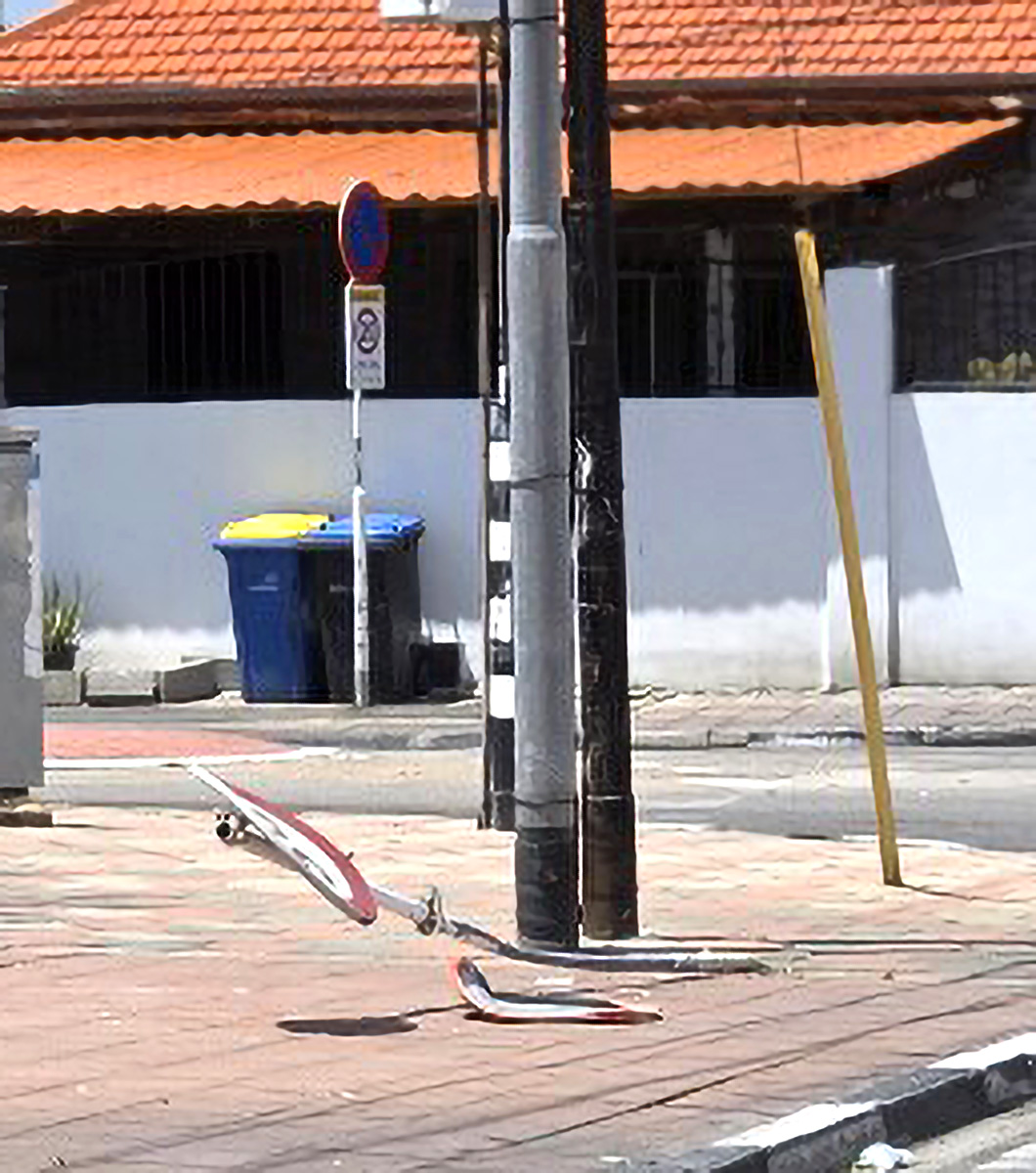 Aki un auto sedan Buick Regal color blanco, cu un adulto mayor tras di stuur, a perde control riba su stuur un poco prome cu e yega e rotonde. El a sigui pasa straight, subi acera casi dal den dos palo di luz instala banda di otro, pero si a ranca un tubo cu borchi di trafico, sigui bay pariba. Aki el a dal den di dos borchi di trafico, y ainda a sigui bay pariba.