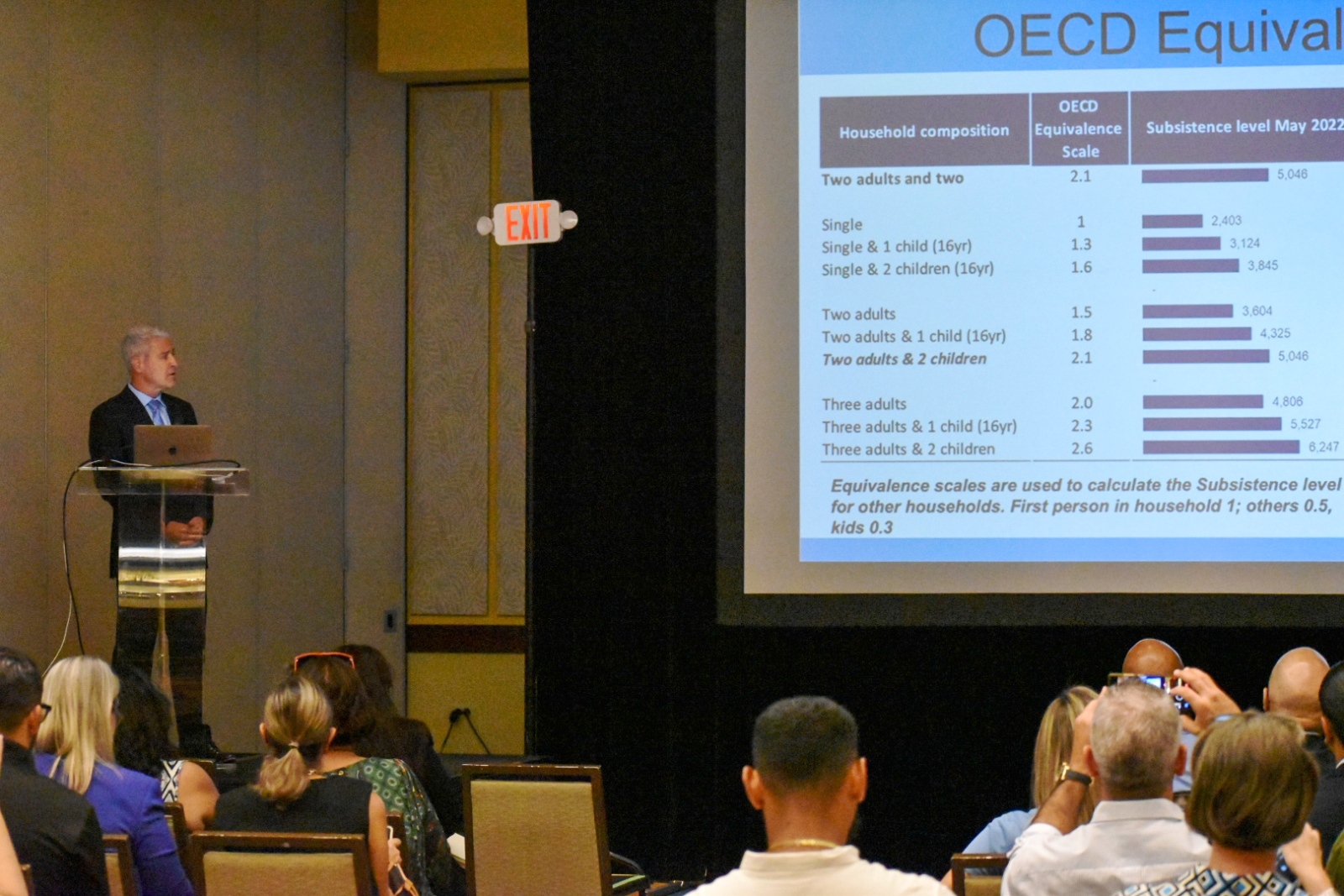 E biaha aki a invita Martijn Balkestein, Director di Camara di Comercio Aruba y ex-director di CBS, pa duna miembronan un presentacion di e bestaansminimum na Aruba.