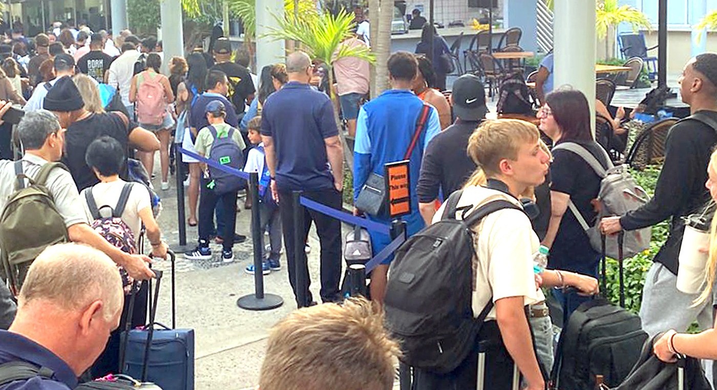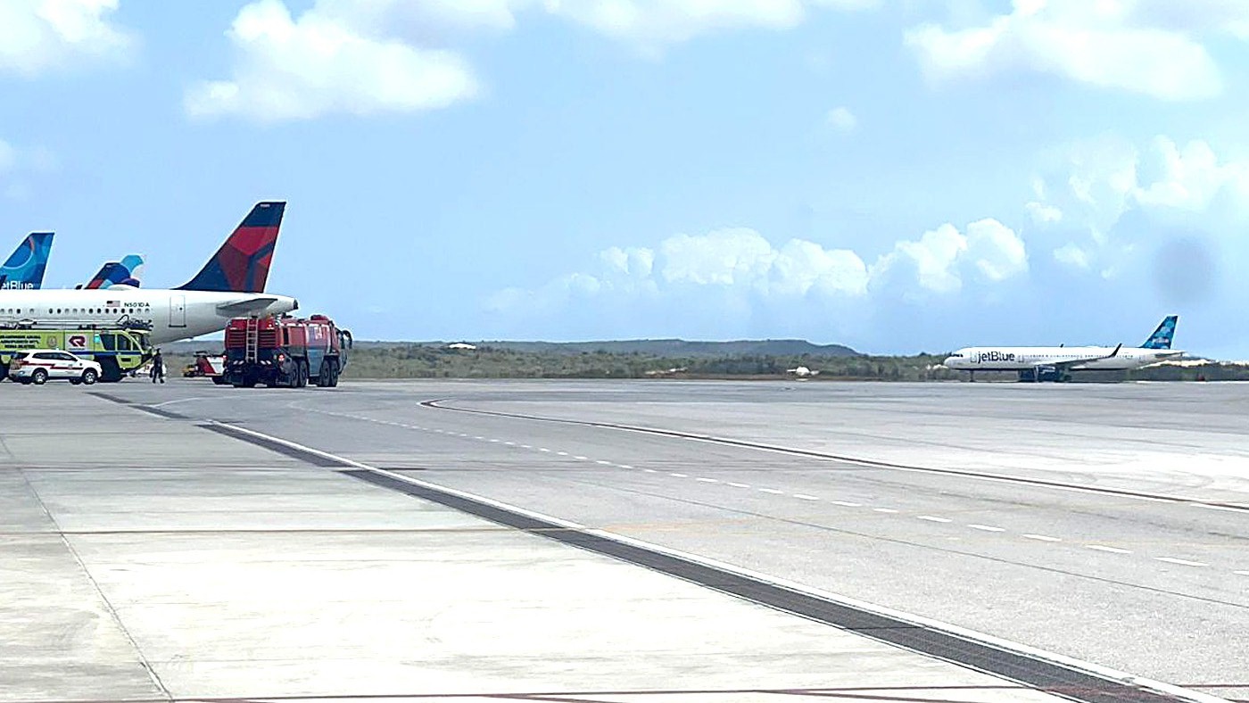 Pero banda di 1:20 pm ainda paden di terminalnan di US Bound tabata check-in pasahero, pero poco despues a drenta e notificacion pa tur hende sali, y cu servicio ta wordo suspendi temporalmente, mientras cu ta atende e emergencia riba pista.
