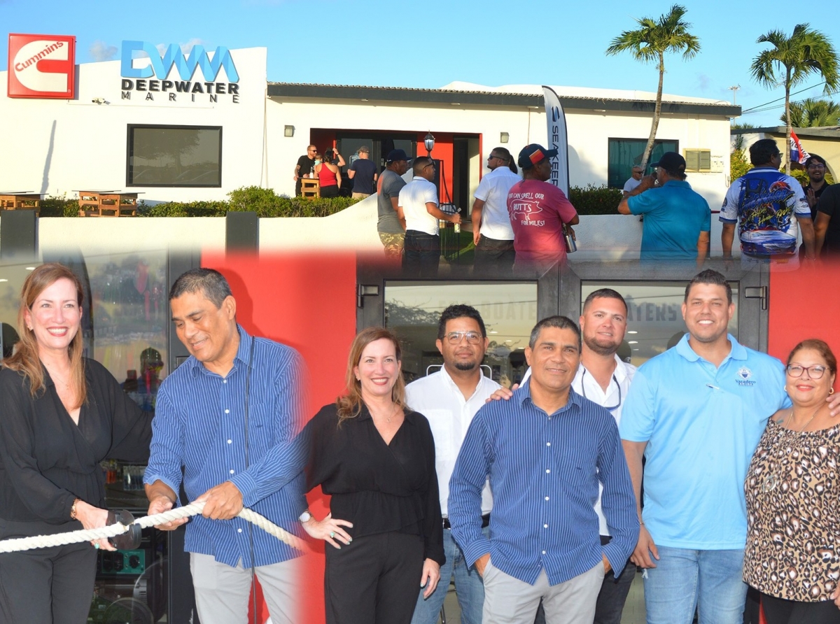 a habri e showroom y tienda nobo di Deep Water Marine. E directora Caresse Arends a haya e honor di usa un sker pa corta e cabuya diki, den presencia di manager Alfred Lindeborg.