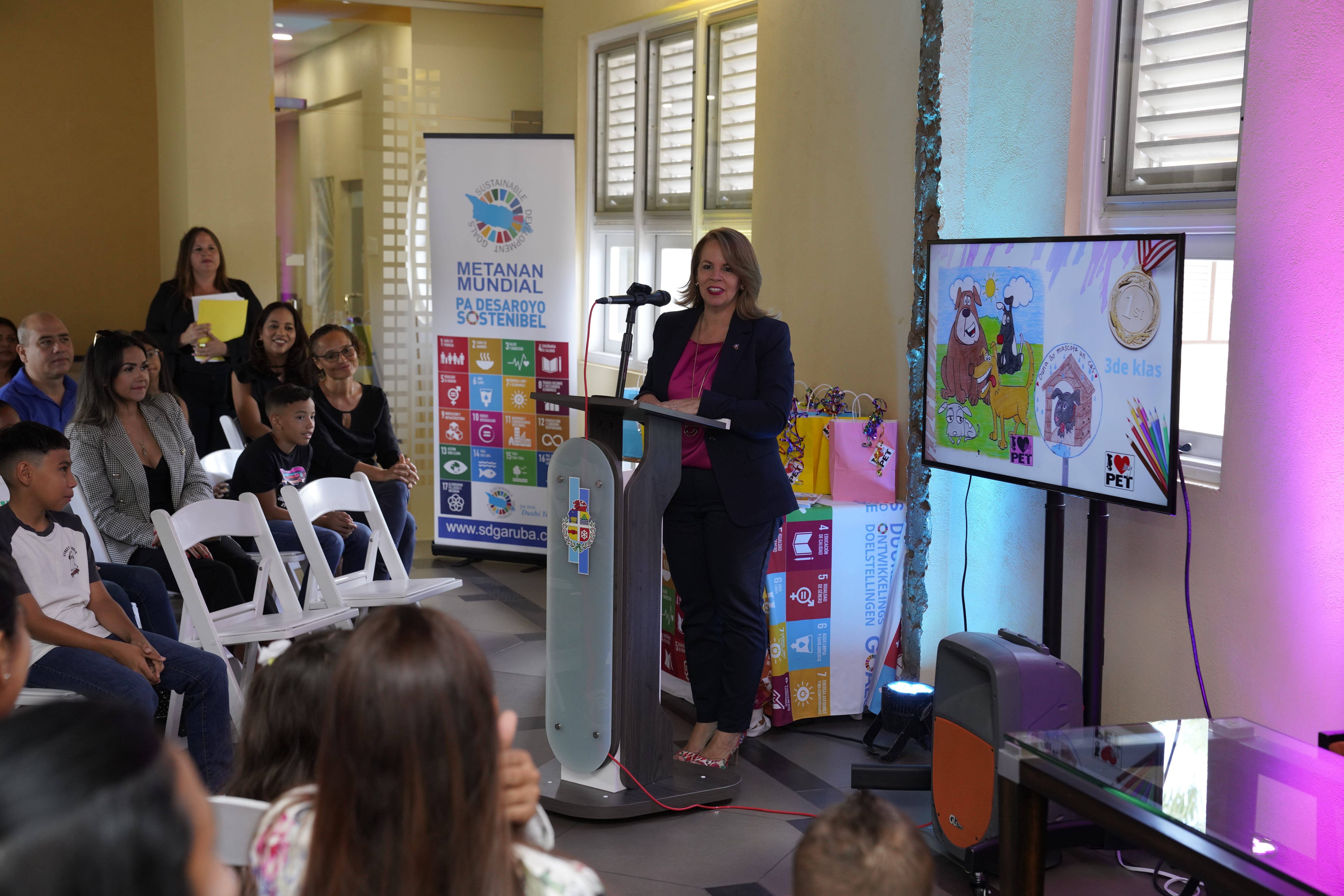 Por ultimo, Prome Minister a gradici tur e ganadonan pa nan tempo y dedicacion pa participa na e concurso aki, na mayornan y adultonan cu ta stimula e muchanan no solamente cu pintamento y arte pero tambe pa e amor na nan mascotanan. “Ohala aki un par di aña cu nos sigui haci esaki nos ta weita tur nos mascotanan na Aruba ta wordo bon trata”, Prome Minister a termina bisando.