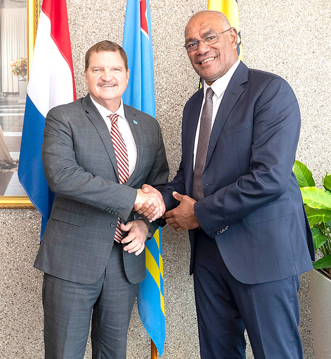 ORANJESTAD (AAN): Den marco di The 21st Overseas Countries and Territories – European Union Forum, Aruba a ricibi awe bishita oficial di Alcide Ponga Presidente di New Caledonia na Bestuurskantoor.