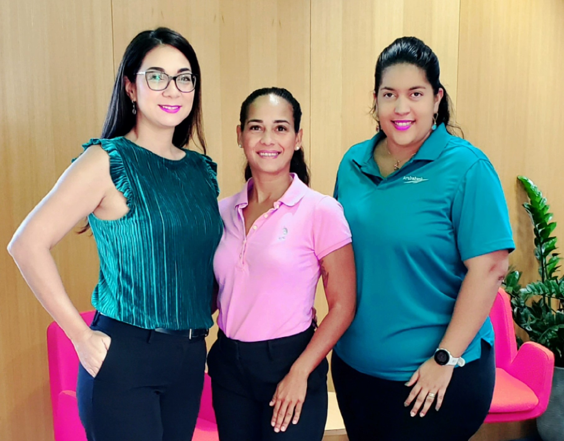 Alavez en conexion cu e conscientisacion empleadonan di Aruba Bank a bisti na colornan berde, teal y roos.