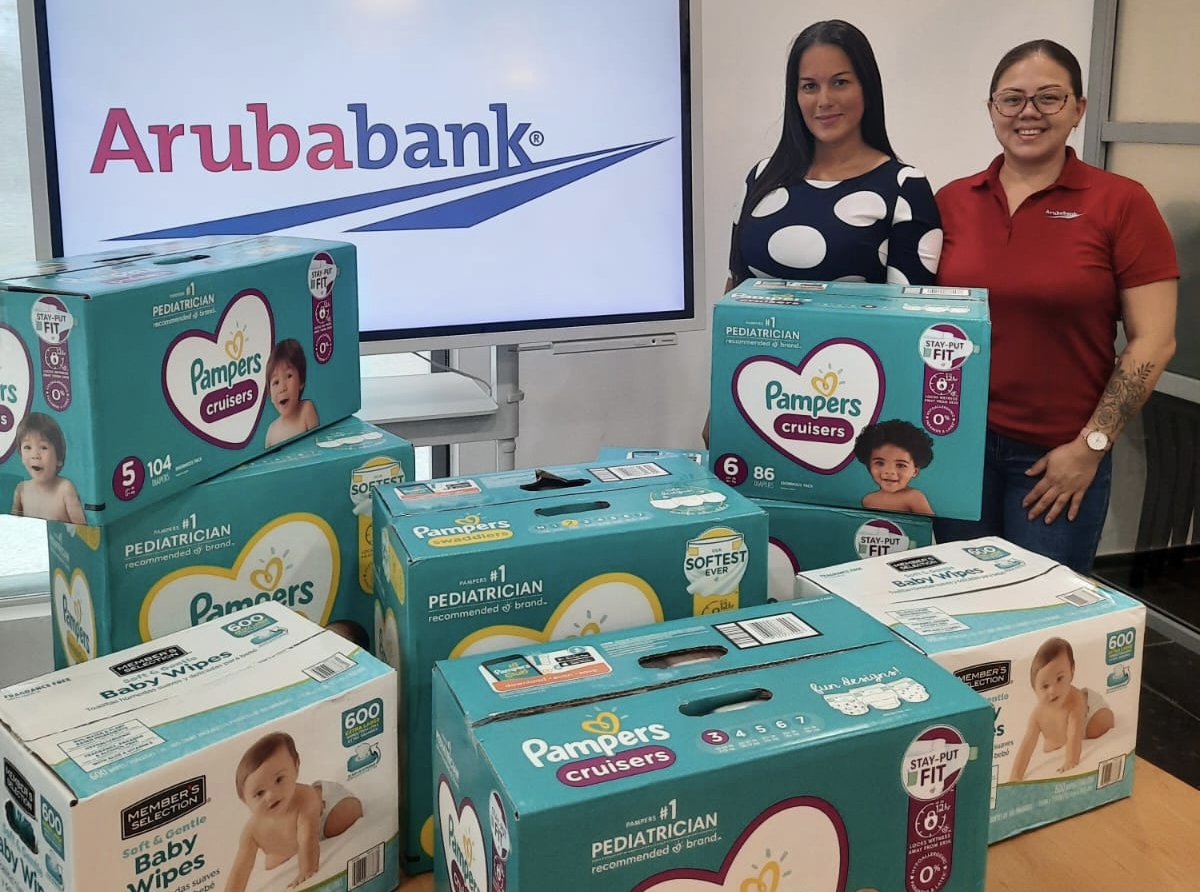 ORANJESTAD (AAN): Aruba Bank a haci un donacion di diferente caha di pampers y wipes pa asina por yuda mas mama nan soltera den necesidad atraves di MINA (Mother’s In Need Aruba).