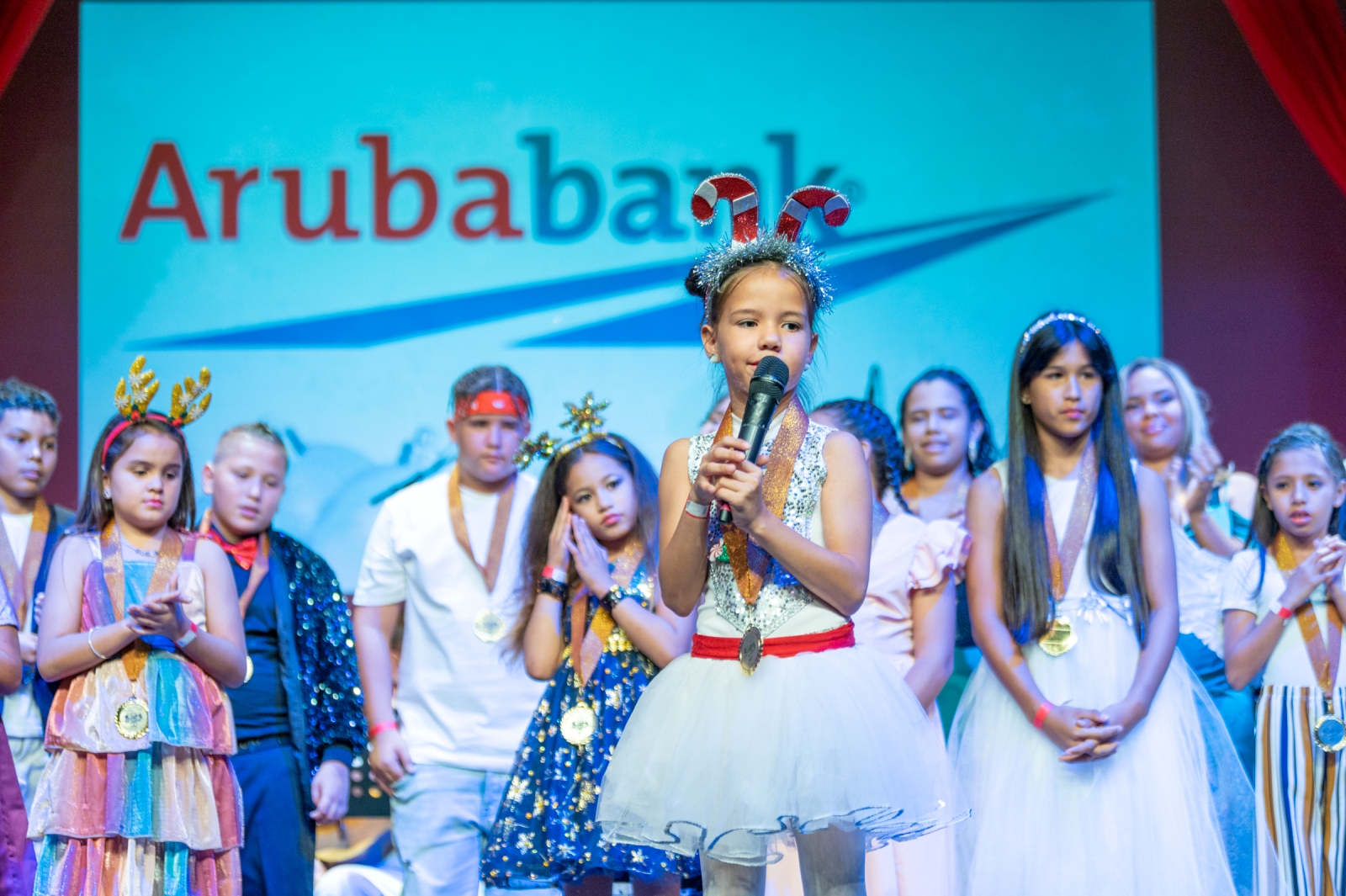 Aruba Bank ta contento di a yuda realisa e di 10 y ultimo edicion di Kids & Teens Christmas Song Festival cu un participacion di 30 mucha. Nos ta orguyoso di por a mira e talentonan di Aruba canta canticanan di Pasco na Papiamento. Pabien na un y tur cu a participa/