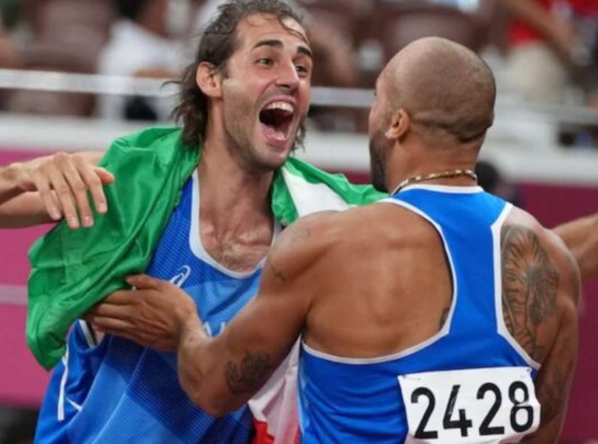 Sacudi pa e emocion, Tamberini a cuminza braza Jacobs, y despues el a pone riba nan dos e bandera di Italia, lagando nan cara scondi, sinembargo por a mira con tur dos a uni pa duna un sunchi.