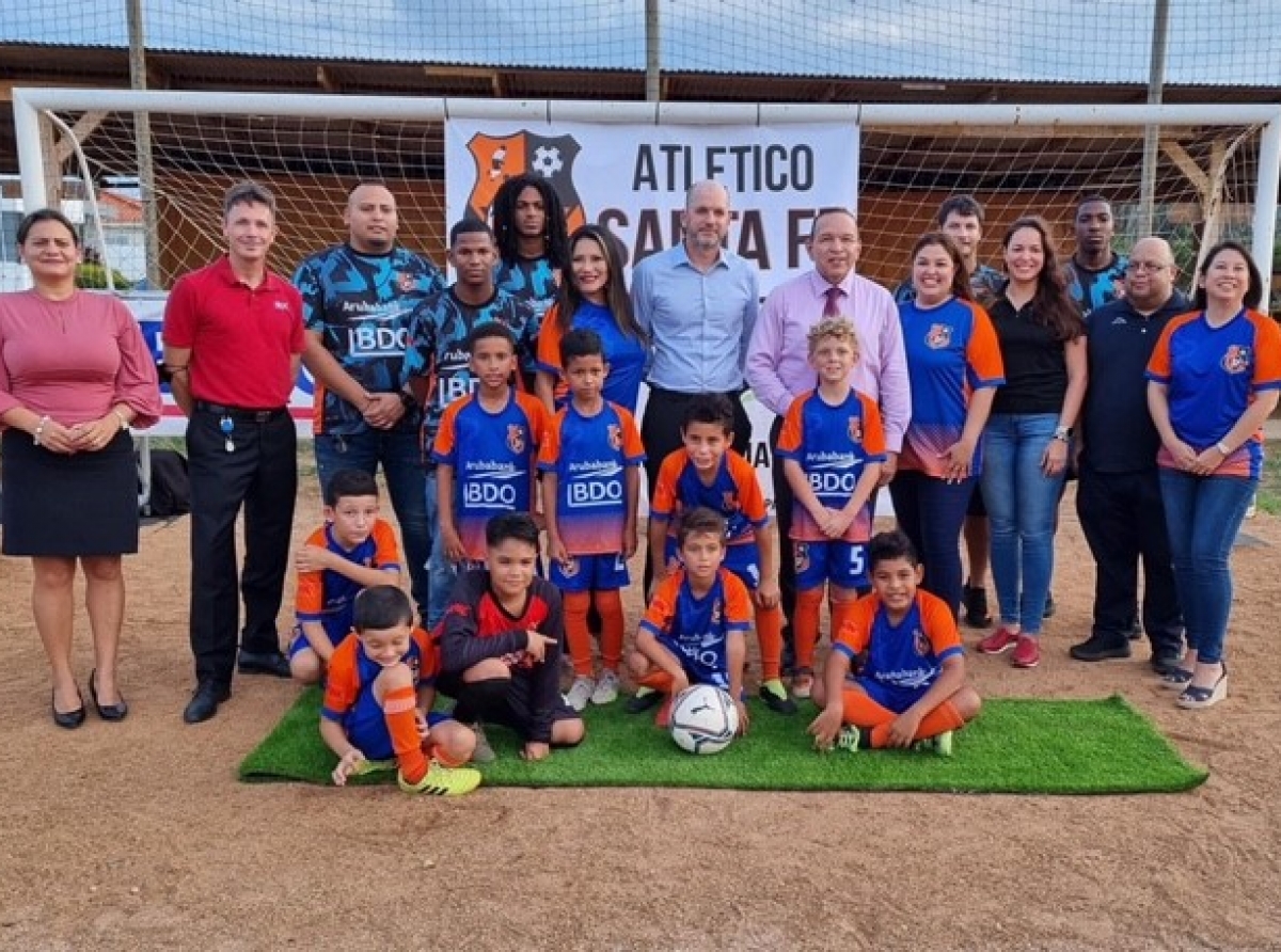 Minister di Enseñansa y Deporte a batiza uniform di futbol di SV Atletico Santa Fe