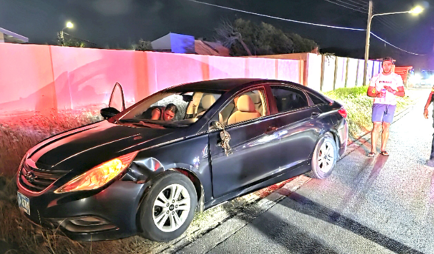 Chauffeur di e Hyundai Sonata a relata na Polis, cu e tabata moviendo zuid for di Tanki Leendert rumbo pa Playa, y diripiente na forma inespera e muhe a cana subi caminda. E muhe canando basta mey-mey, pesey el a dal na e banda robez, na e spiel pafo, y un parti dilanti parti robez di e auto,.