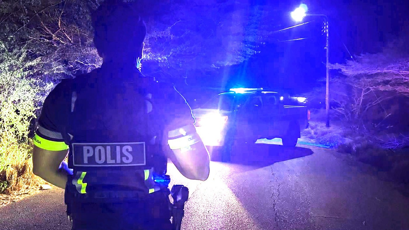 E persecusion a sigui y a logra di para e auto te na altura di Juana Morto. Pero aki e portanan di auto ad al habri, y e tres personanan cu tabata den e auto a sali y huy pa polis den tur direccion. Polis a logra core bay tras di dos di nan, pero brevemente a perde nan fo’i bista.