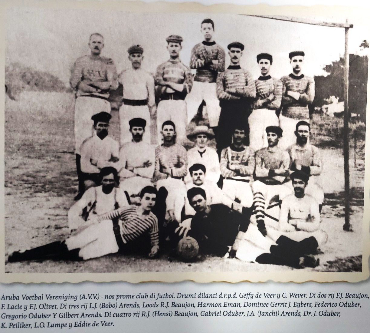 Na aña 1909 Sr. Gerard de Veer, e tempo ey un comerciante conoci, a mira un potret di un bala di futbol den un catalog y a manda busc’e pa su dos yiu hombernan, esta Eddy y Geffy. E mesun aña, Dominee Ds. Gerrit Eybers a funda, hunto cu e rumannan de Veer y otro hobennan di Playa (Oranjestad), e prome club di futbol. E nomber cu nan a scoge tabata Aruba Voetbal Vereniging, popularmente conoci como A.V.V. E tereno cu nan a haya pa traha e prome veld di futbol riba nos isla tabata na unda awendia e edificio di Corte ta situa, esta panort di Emanstraat y pabou di Hendrikstraat. Como cu e tereno a tabata yen di mata di kwihi, tuna y cadushi, e hobennan hunto cu Dominee Eybers mester a traha duro pa por a kita tur esakinan.