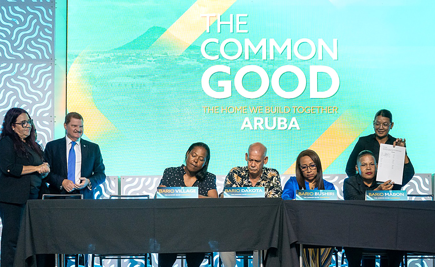 un acuerdo di cooperacion cu un meta cla: mehora cada bario y, paso pa paso, expande esaki pa mas barionan tur rond di Aruba. E momento a resalta e espirito di unidad y compromiso cu e conferencia ta representa.