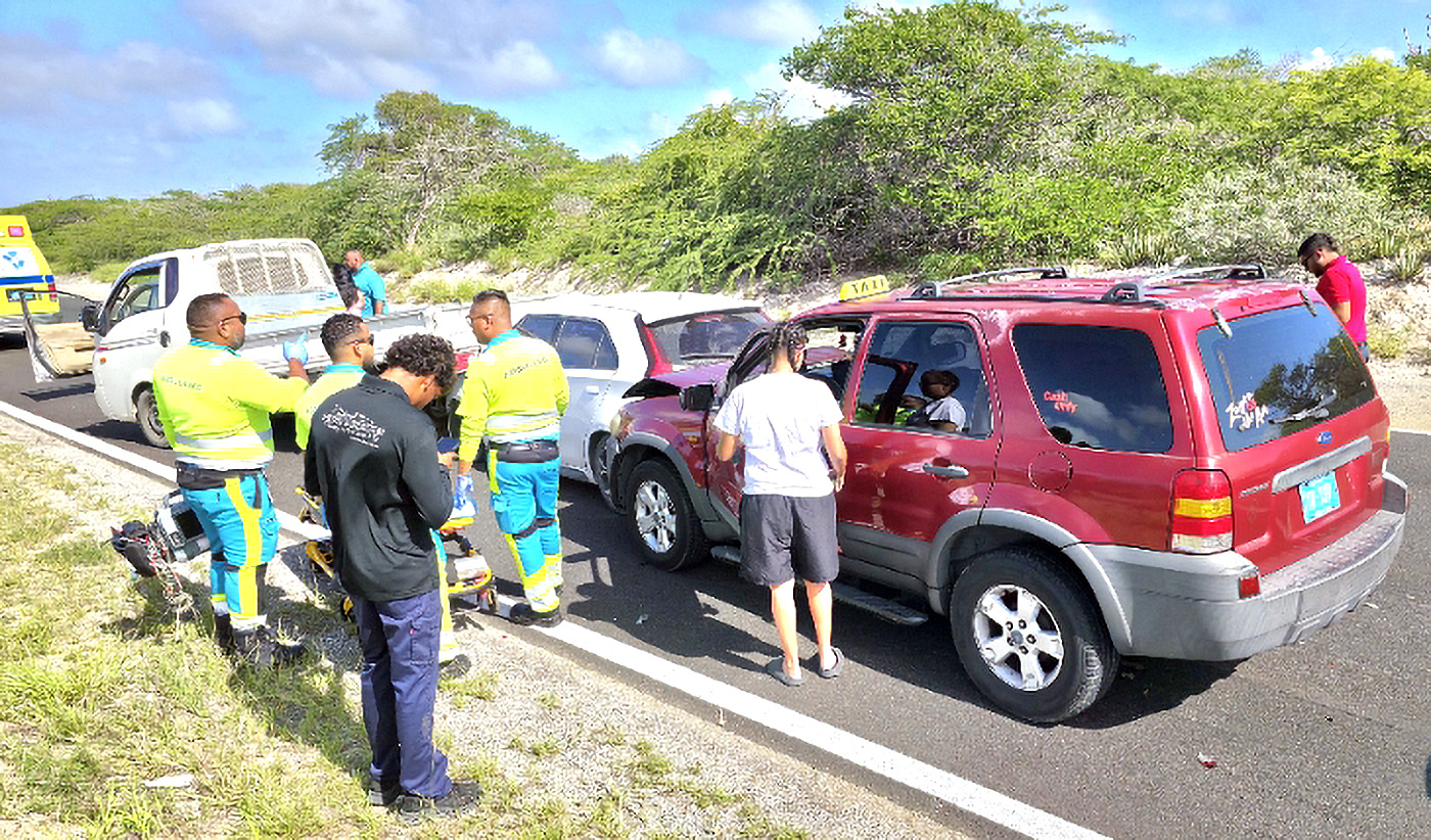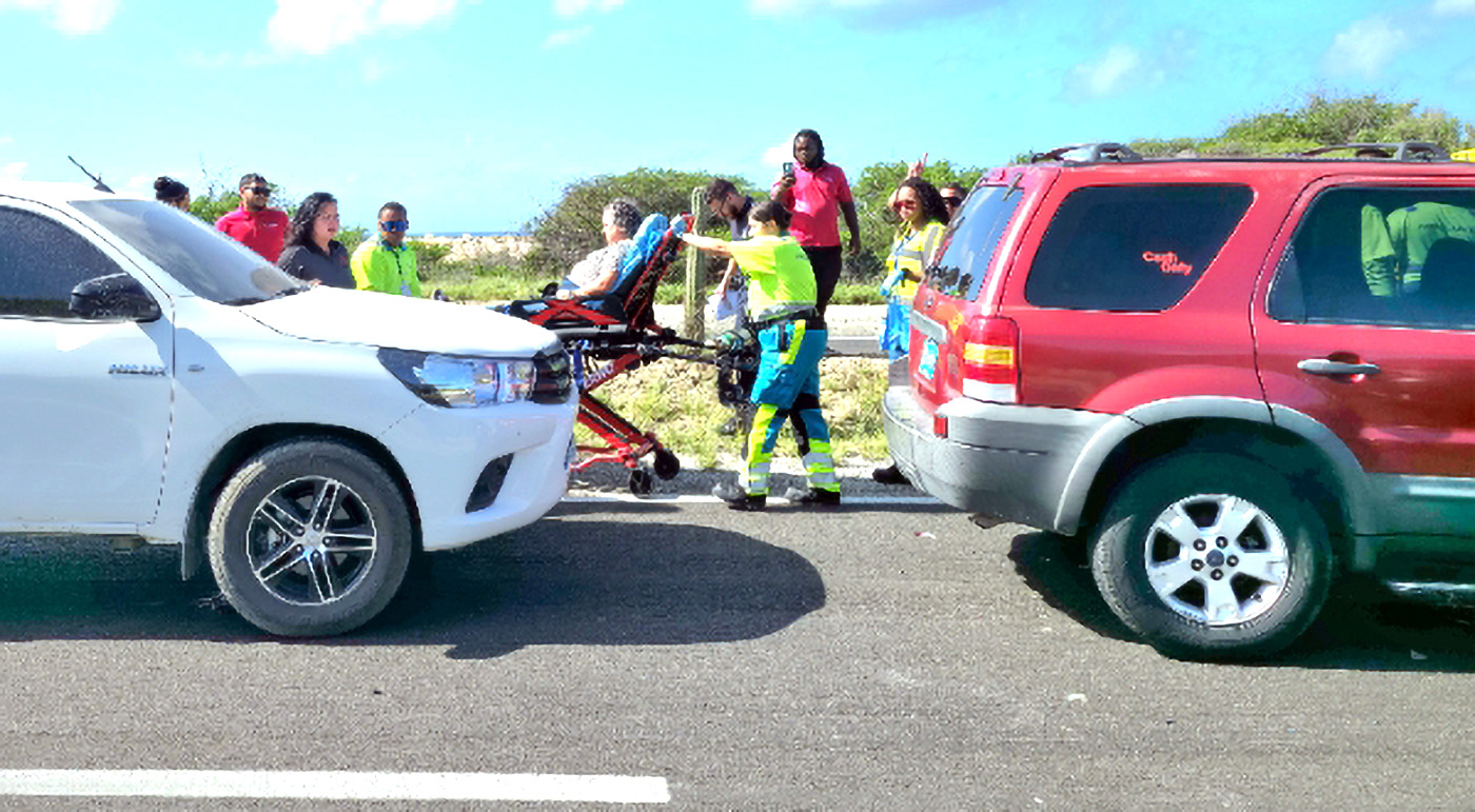 Dos ambulance a presenta na e lugar y por a mira Paramediconan transportando un señora pa ambulance. E señora tabata mustra ok, pero a wordo hiba pa Servicio di Emergencia na Hospitaal pa control di posibel whiplash.