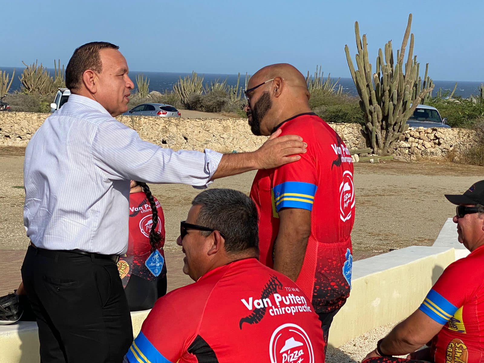 Biking Squad Aruba bou guia di sr. Rubert Paesch y ta consisti di hende muhe, hende homber como tambe mucha cu ta practica e deporte di ‘biking’. Minister Endy Croes ta gradici pe invitacion alavez e caluroso recepcion.