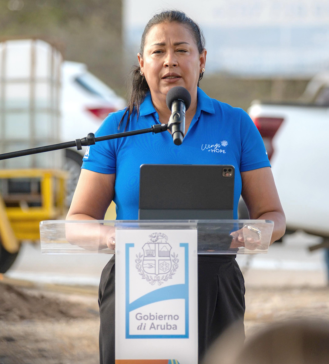 Angeline Flemming cu ta director di salud y sostenibilidad na Aruba Airport Authority N.V. a enfatisa cu awor conoce un transformacion importante den e strategia corporativo di AAA N.V., unda sostenibilidad no ta un proyecto apart, pero un componente central di nan vision pa futuro. Flemming a subraya cu e programa Wings of Hope, un comision boluntario di e empleadonan di AAA N.V., ta activamente envolvi den varios proyecto comunitario durante henter aña. Asina ta contribui directamente n’e 17 Metanan di Desaroyo Sostenibel (SDGs na ingles). Un ehempel concreto di esfuersonan di AAA N.V. ta su colaboracion cu Aruba Conservation Foundation (ACF), den cual nan a desaroya un greenhouse pa planta matanan nativo, cu e meta pa yuda restaura e ecosistemanan local y fortalece Aruba su biodiversidad.