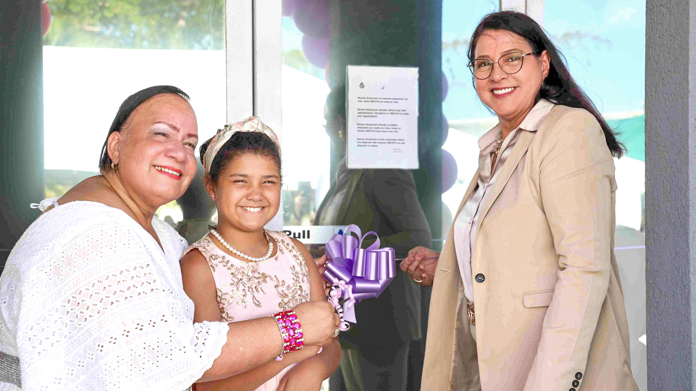 Minister Wyatt-Ras hunto cu Directora señora Magaly Maduro a corta e cinta, marcando e apertura oficial di e oficina nobo. Durante e ceremonia, tabata tin un momento simbolico hunto cu muchanan y cantante Freddy Rasta, reflehando e mision central di e instancia: proteha, guia y sostene. E evento a reuni representantenan di gobierno, profesionalnan y partnernan di comunidad.