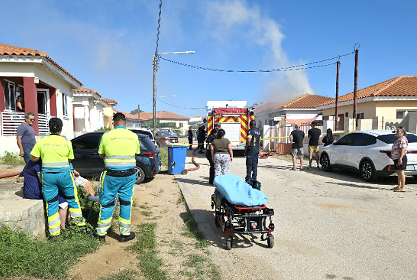 ORANJESTAD (AAN): Tabata Diamars den oranan di mainta, cu yamadanan a cuminza drenta di bisiñanan indicando cu tin huma diki saliendo di un cas na e Residencia Vigia, cu ta situa riba e caminda di Paradera pa Jaburibari.