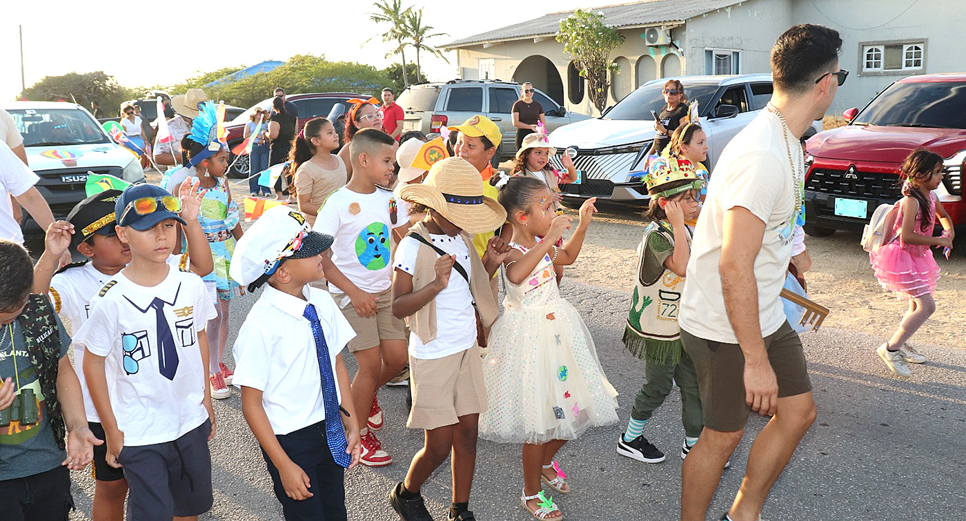 Diabierna atardi despues di 5:30 pm, cu musica y caranan feliz, y disfraznan unico, e muchanan di diferente scol a participa den e Parada aki.