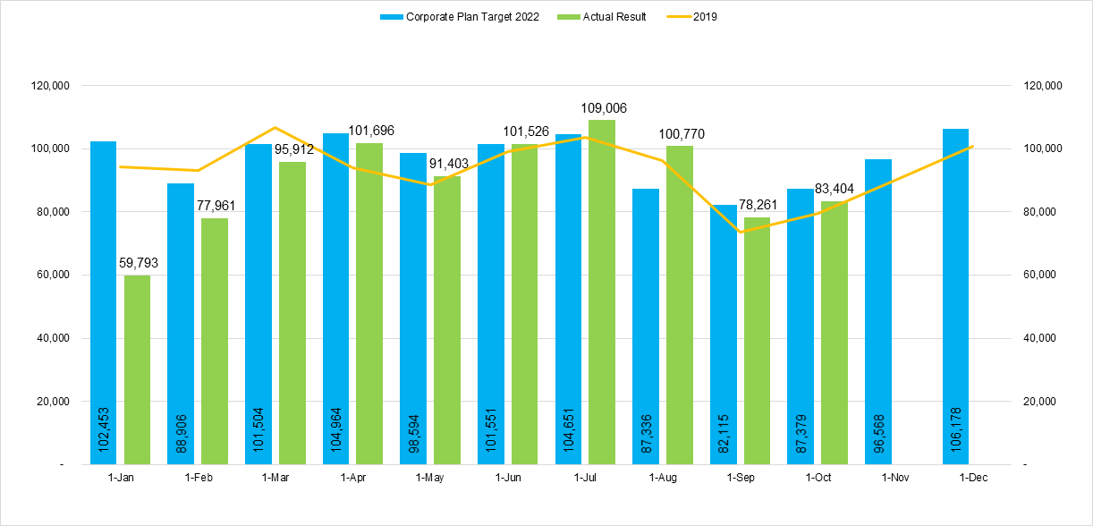 A ser demostra un biaha mas den luna di October 2022 cu e cifranan a surpasa e nivelnan di mesun luna di aña 2019.