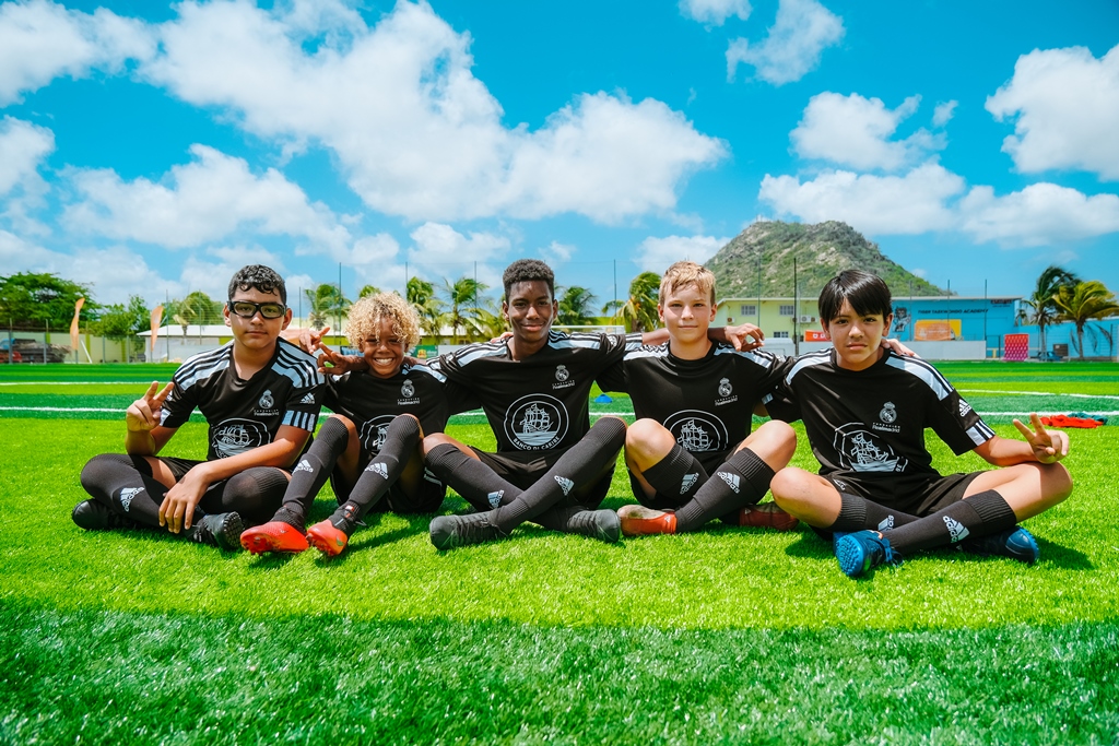 ORANJESTAD (AAN): Banco di Caribe pa di dos aña ta contribui na e clinica di Fundacion Real Madrid y e aña aki a bolbe mira hopi talento cu pasion pa futbol riba veld.