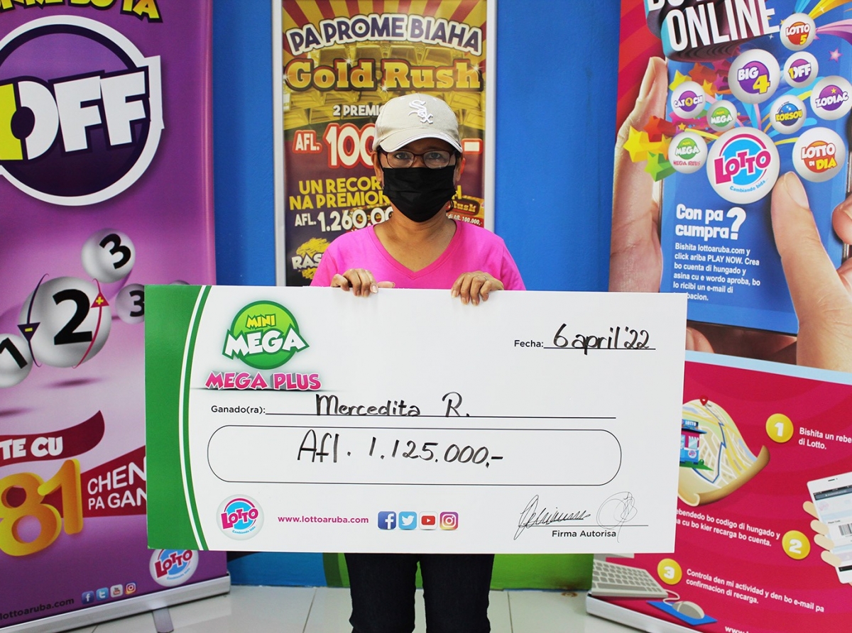 Señora Mercedita a bay cobra su premio di 1.125.000 Florin di Mini Mega