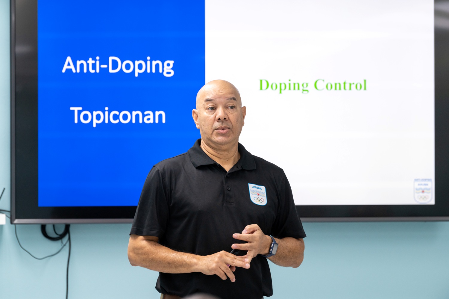Angelique Koolman a elabora riba e control di dopahe y a splica con e proceso di dopahe ta tuma lugar ora controla esaki. Na mes momento a duna un demostracion con un doping controle lo mester tuma lugar. Na final Patrick Werleman a duna informacion di e link nan importante pa e atletanan haya sa mas riba e topico anti doping.