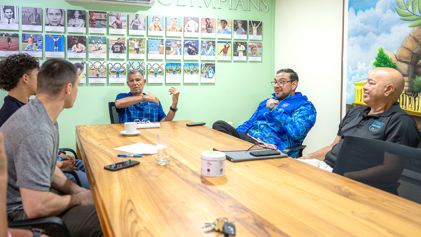 ORANJESTAD (AAN): Recien a reuni cu presidente Gustavo Velasquez y Vice Presidente Felix Tromp di Aruba Karate Bond (AKB) y miembronan di e organizacion “Aruba Sports Hub” cu ta ser representa door di atleta di Karate Nathan Boekhoudt y entrenador y medayista Olimpico Stanislav Hurona.