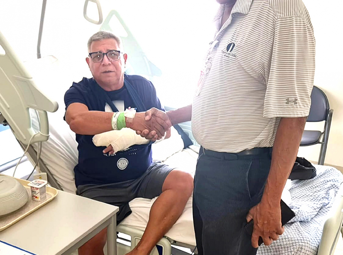 Despues di un rato nan a logra saca Jan Poets di e situacion precario, y cu urgencia a bay cune Servicio di Emergencia na Hospital. E tabatin hopi dolor e momento ey, y paramediconan a lora su man robez pa stop sangramento. E ta unico cu a wordo transporta pa Hospital, como cu DJ Edson a sali ileso.