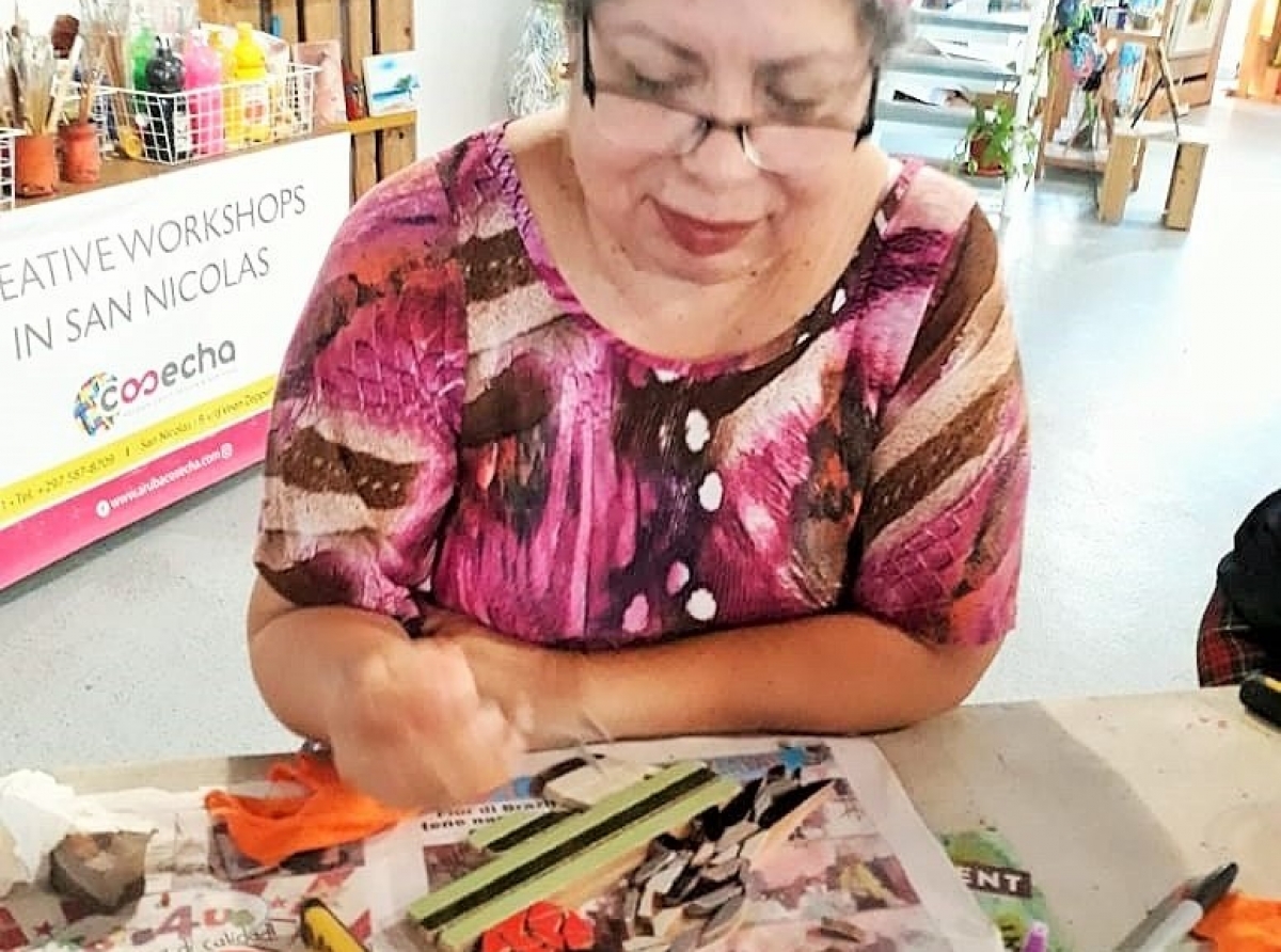 Diabierna 27 di augustus e artista local Merveline Geerman tin un workshop di mosaic unda participantenan por bin traha un reiger, na papiamento yama garsa.