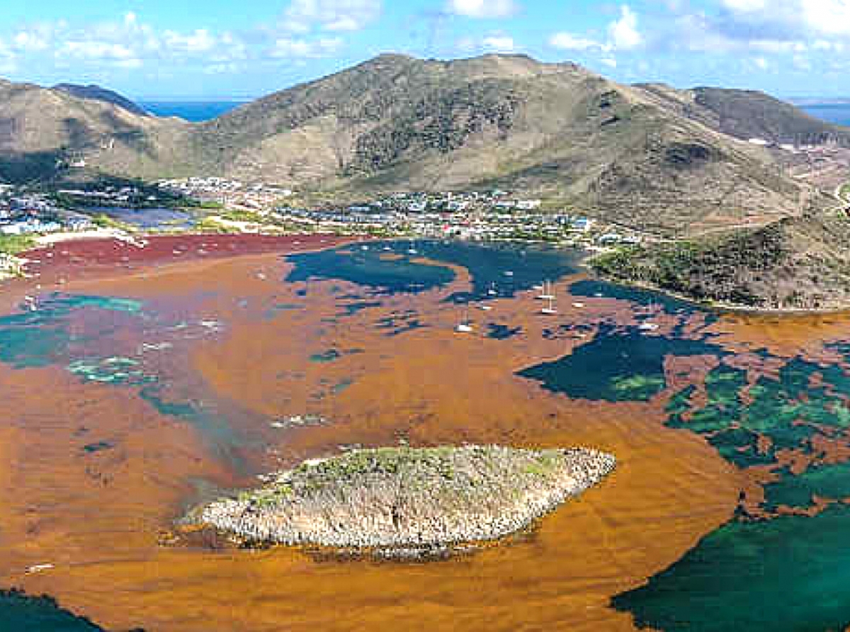 Isla na parti frances di St. Martin cera debi na Sargassum