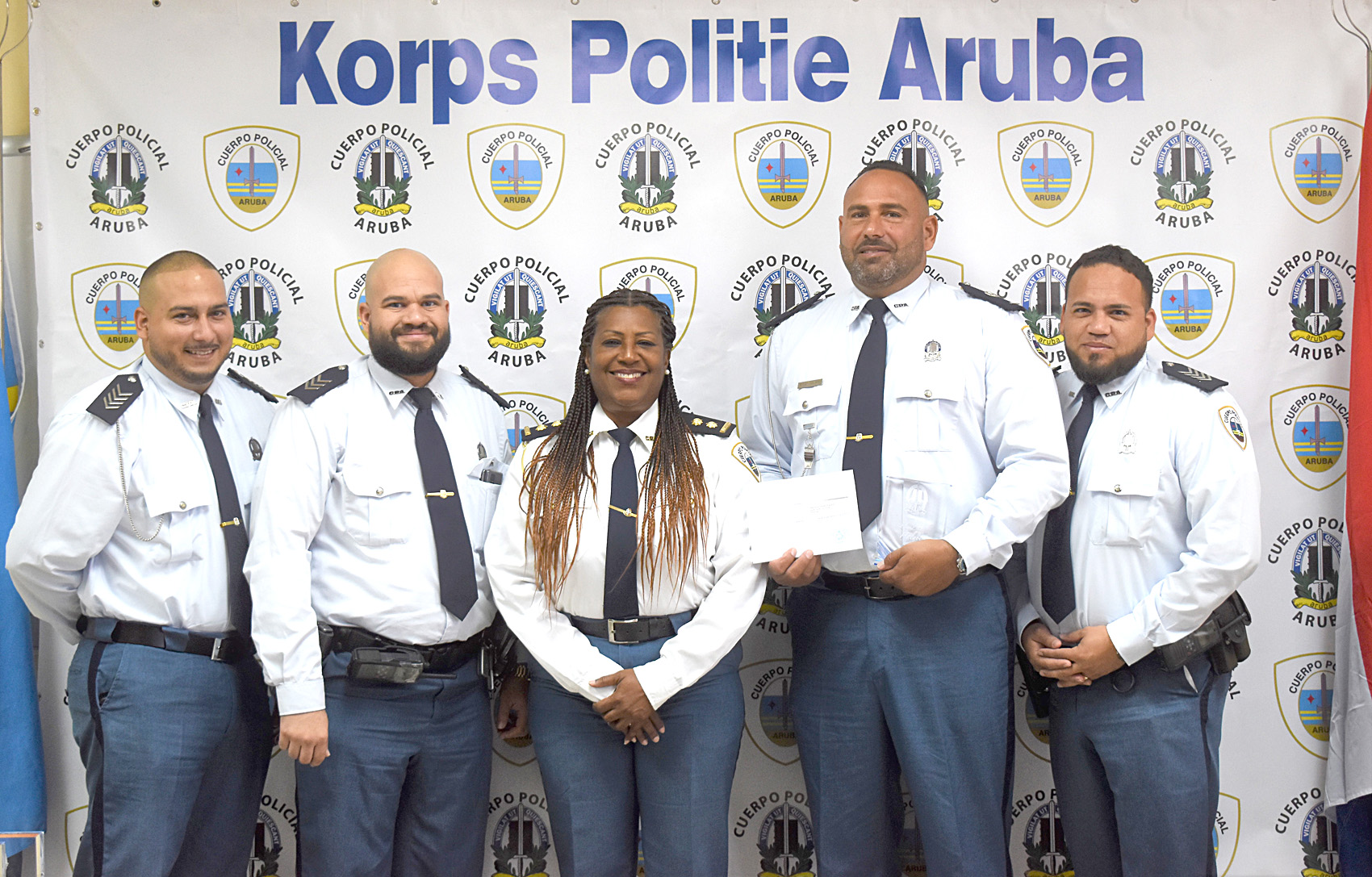 Na esnan cu a cumpli 25 aña, 30 aña y 35 aña den Cuerpo Policial Aruba, danki pa e sosten, dedicacion, tempo y esfuerso cu a hiba boso asina leu den boso carera. Masha pabien. Pueblo di Aruba por ta orguyoso di boso.