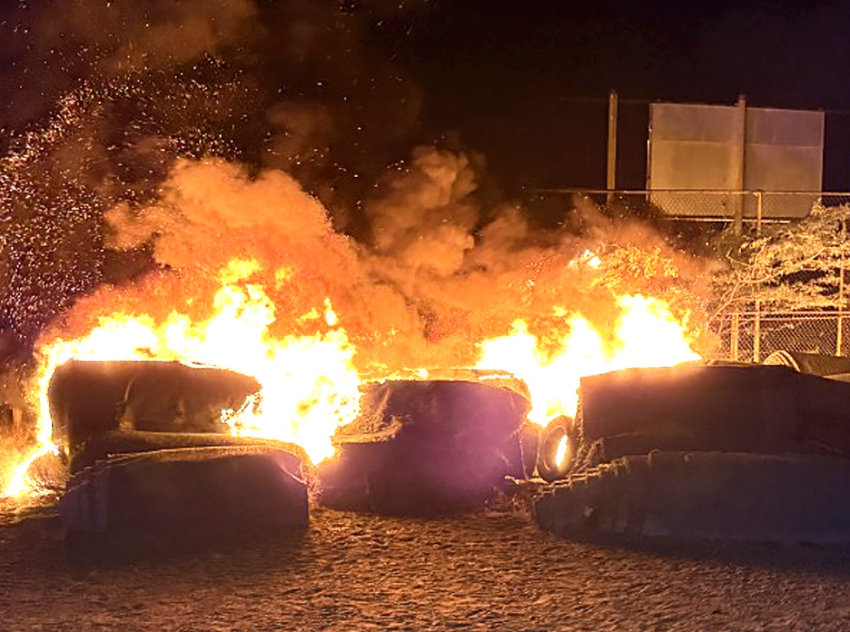 Den nan poder, a bin haya artefactonan cu nan a uza pa cende candela. Pues e dos hobennan aki aparentemente ta piroman, y e mas lamentable ta cu nan a kima un monton di yerba artificial. E artificial turf aki ta esencial pa deporte, y ta costoso.