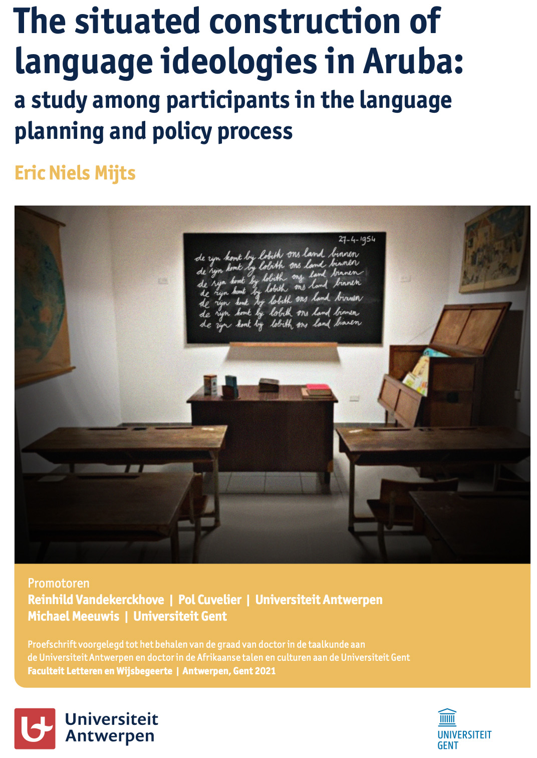 E proyecto di dr. Mijts a trata relacion complica entre e ideologia di idioma, colonisacion y e mobilidad social-economic y emancipacion den e ex-colonianan, unda e maneho di idioma colonial hereda ainda tin su influencia awendia. E maneho di idioma ta duna prioridad na e idioma di e colonisado previo riba e idioma di cas di esnan den enseñansa, y frecuentemente den practicanan legal y den gobernacion.