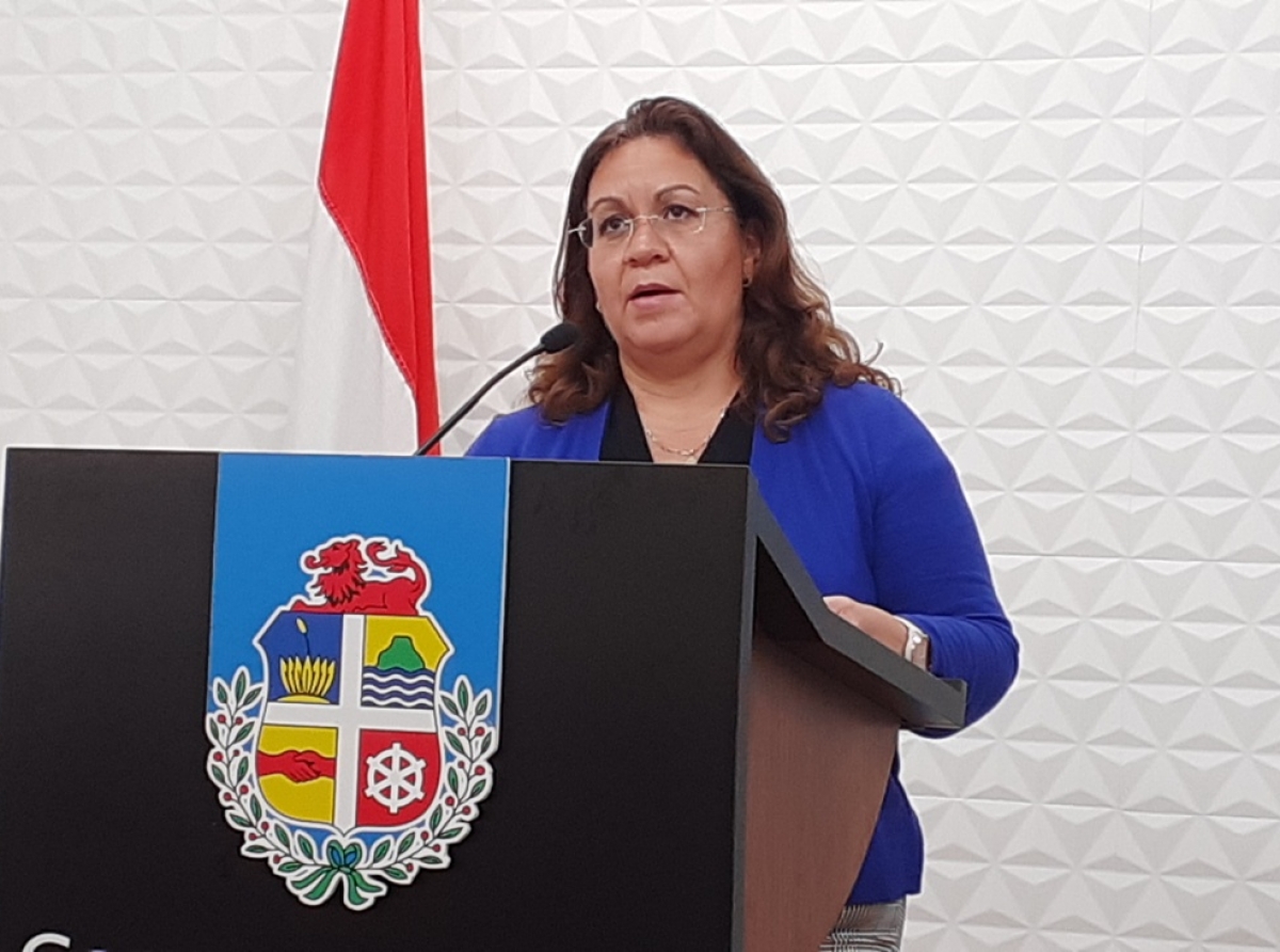 ORANJESTAD (AAN) – Sharline Koolman, Hefe di Departamento di Malesanan Contagioso (DBZ), na Departamento di Salubridad Publico (DVG), y Crisis Team Leider, den conferencia di prensa di dialuna, e siman aki, a toca tambe e tema di vacunacion.