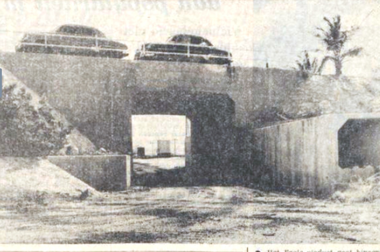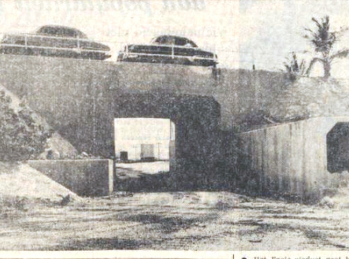 Pa no stroba e operacion di refineria gobierno a construi un viaduct pa conecta e Boulevard entre Eagle/ Malmok cu Eagle pa Oranjestad. E construccion di e viaduct a sosede na aña 1956.