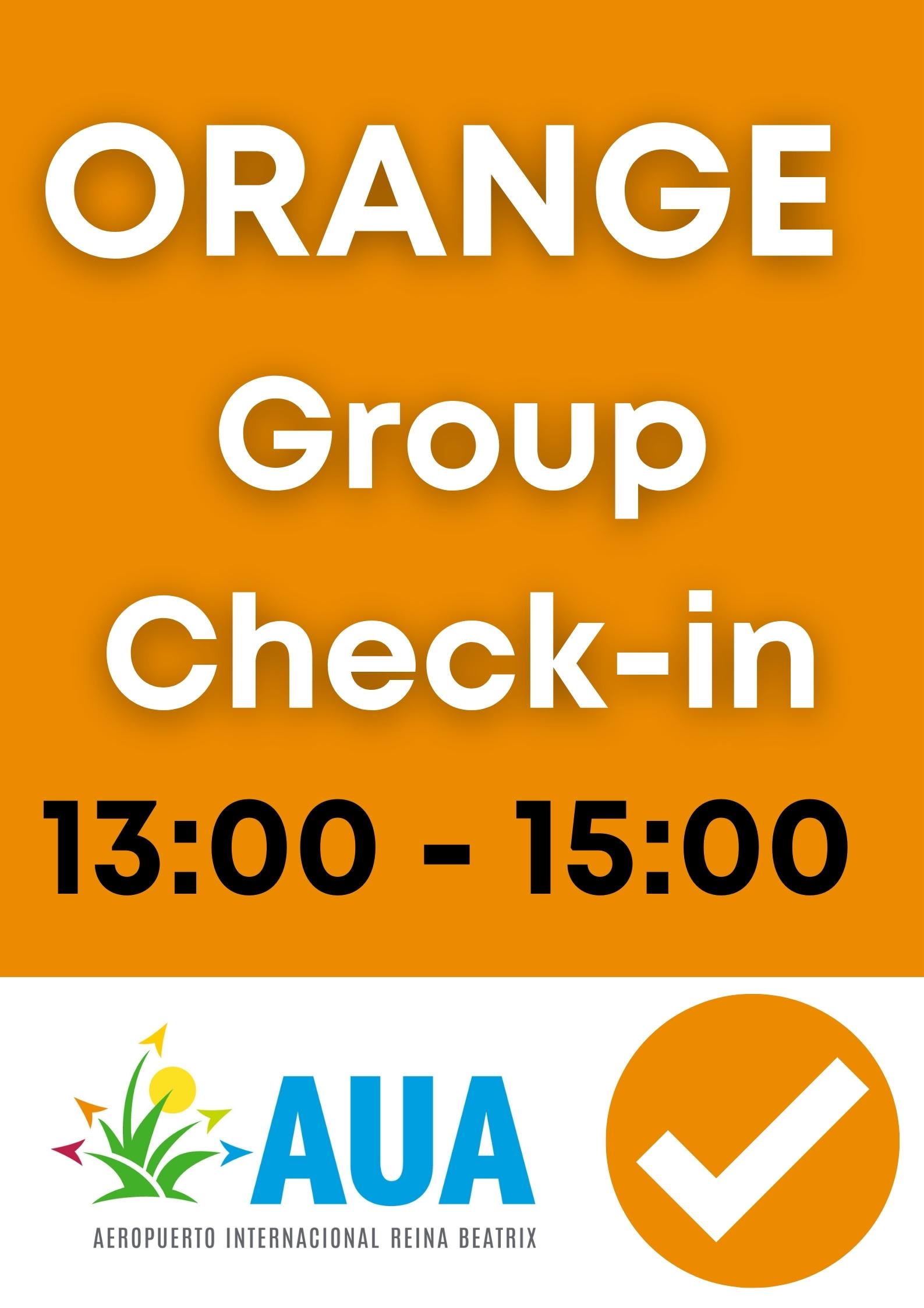 E grupo oranje (ORANGE) por keda check-in entre 1:00 PM - 3:00 PM.