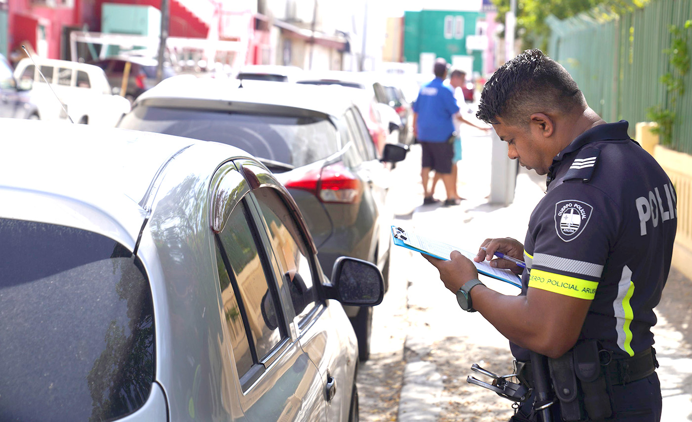 ORANJESTAD (AAN): No ta un secreto cu den centro di ciudad tin un free for all tumando luga cu parkeo y esaki no por tolera mas. Di acuerdo cu ley, automobilistanan cu ta haci uzo di un luga di parkeo den zonanan cu mester paga pa parkeer, mester cumpli cu esaki di forma resonsabel. Mientras cu Gobierno ta studiando e construccion di parkeergarages pa aumenta y facilita e cantidad di espacio pa parkeo, controlnan riba parkeo a cuminsa tuma luga.