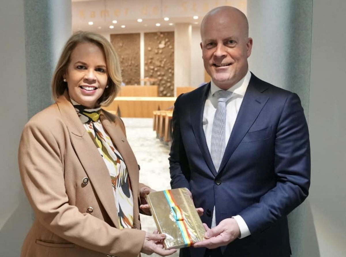 ORANJESTAD (AAN): Durante su reunionnan na Tweede Kamer, Parlamento Hulandes na Den Haag diaranson 30 di november, Prome Minister Evelyn Wever-Croes a topa cu ex-Secretario di Estado di Reino señor Raymond Knops.