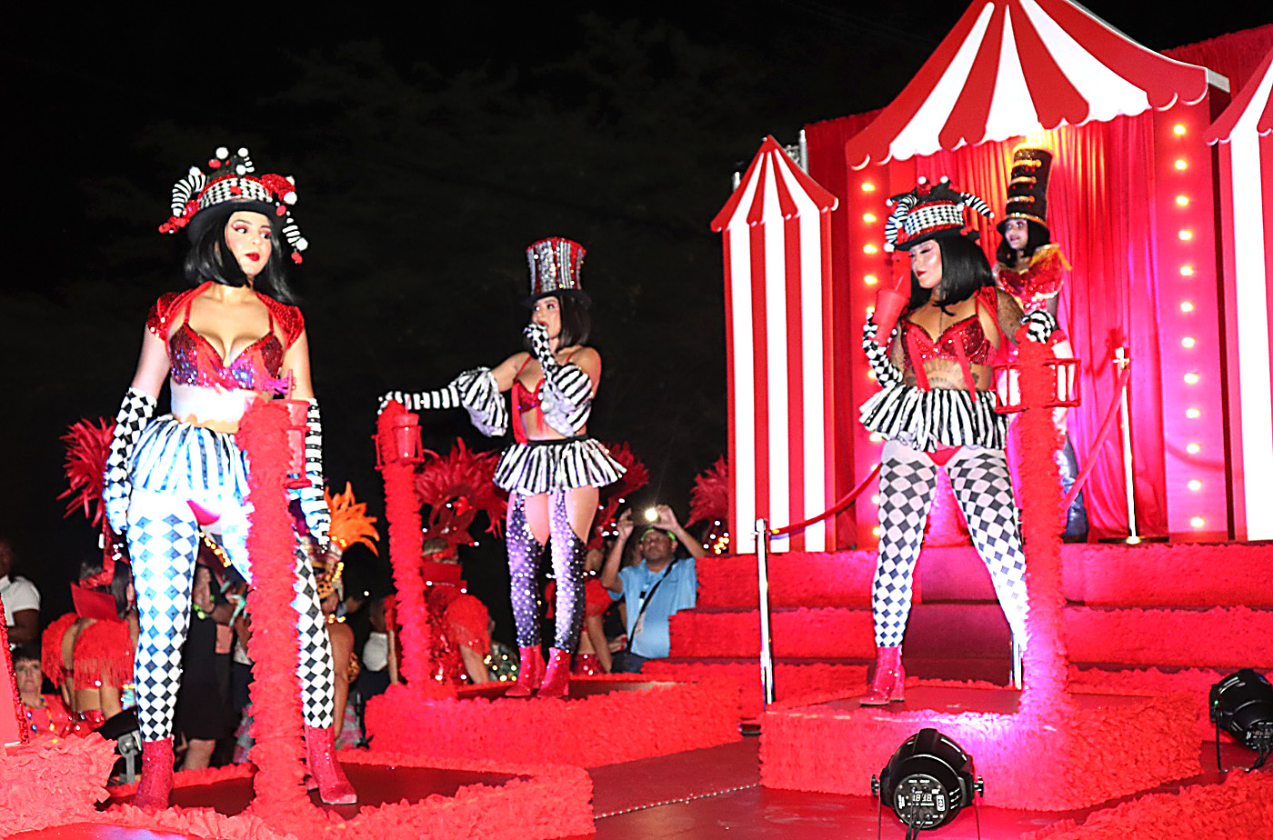 A start cu TOB Carnival Group cu su tema Las Vegas, yen di glamour. El a consisti di cuater seccion, y tres banda musical. Un grupo sumamente luhoso, representando e mundo di casino y un hotel iconico di Las Vegas. Den su carozanan a briya su reinanan, señora carnaval, mr. Universe, y mucho mas cu a ranca e aplausonan ferviente di e publico den cada seccion y sigur un grupo cu a causa furor ta e grupo di Hospital.