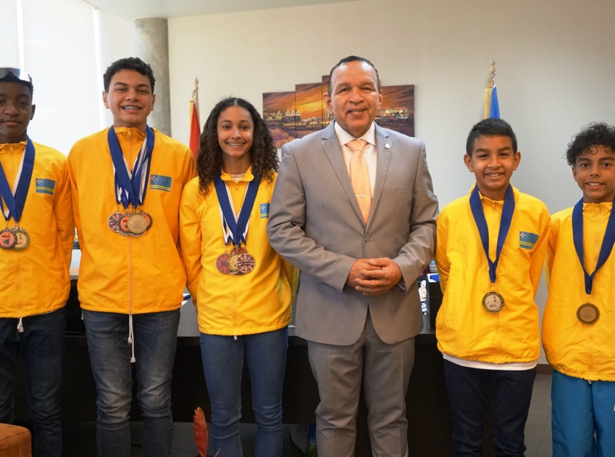 Minister Croes a entrega medaya na hobennan cu ta destaca den atletismo