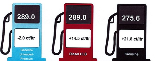Asombrosamente, Diesel ta subi cu 14,5 cent pa wordo bendi awor na 289,0 cent pa liter.
