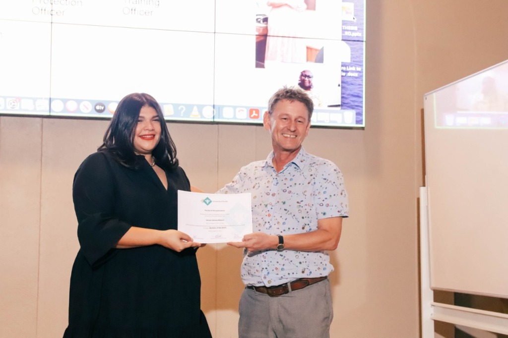 ORANJESTAD (AAN): Recien a celebra un dia super special pa famia Maduro ya cu Genesis Maduro a defende su tesis na Universidad di Aruba y a gradua como Bachelor of Science in Social Work and Development.