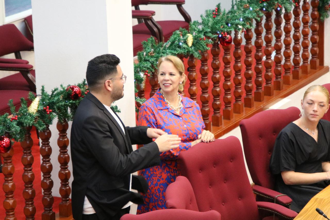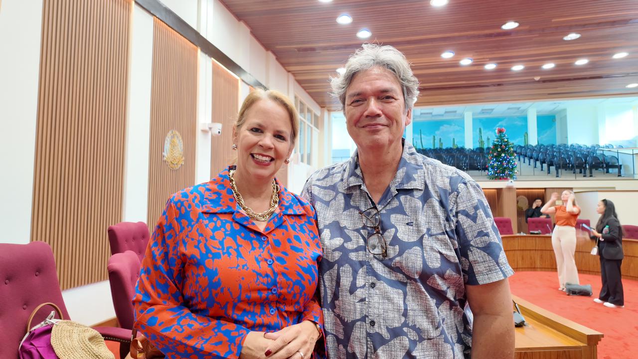 ORANJESTAD (AAN): Diahuebs ultimo, Lider di Fraccion señora Evelyn Wever-Croes y Parlamentario Endy Croes tabata presente den sala di Parlamento den un encuentro hopi special cu un grupo di studiantenan di Haagse Hogeschool y Universidad di Aruba, cu ta sigui nan minor ‘Koninkrijkszaken’.