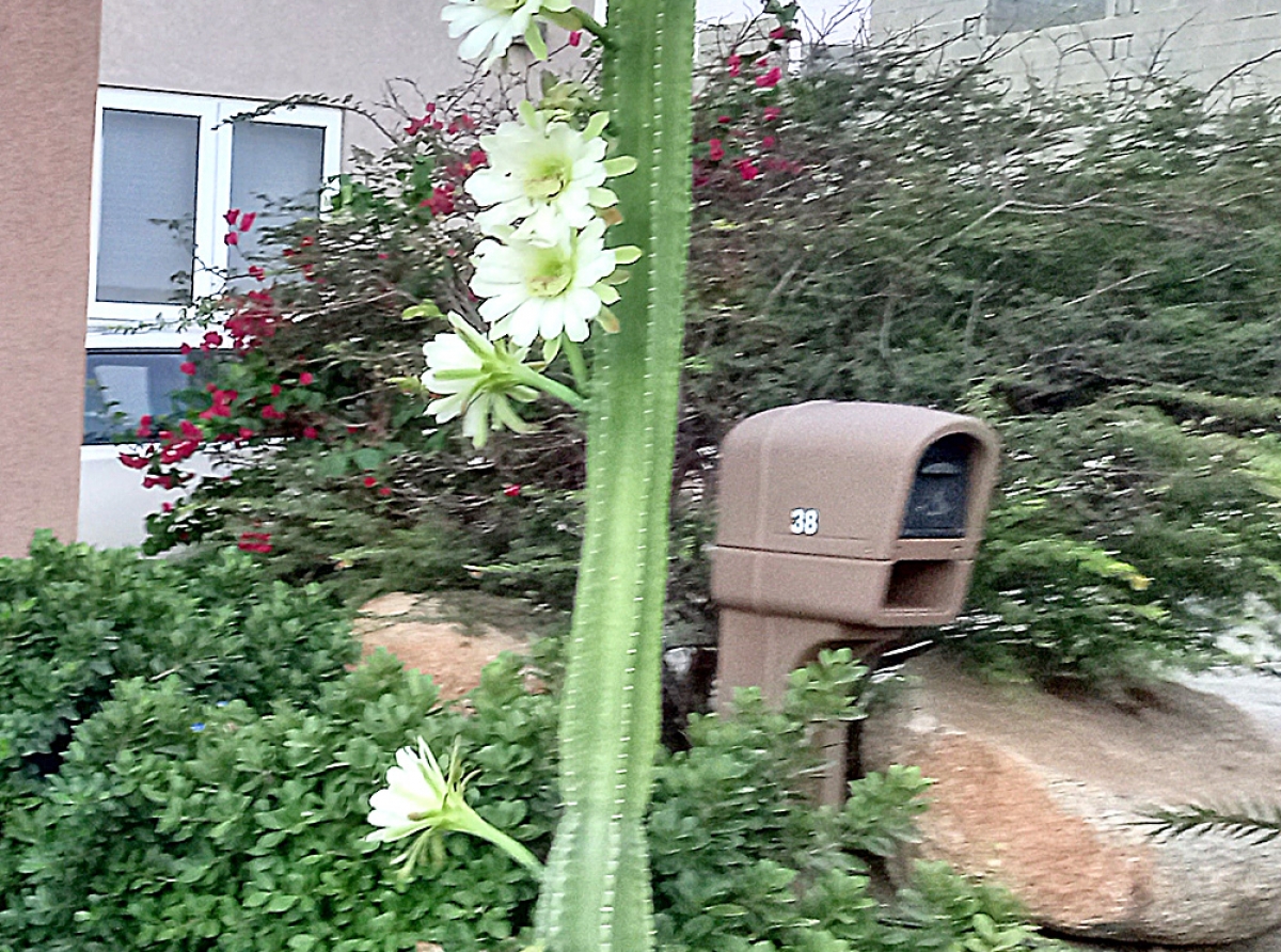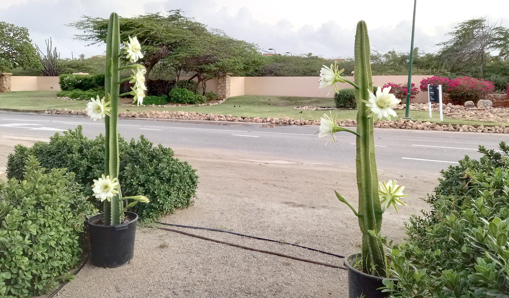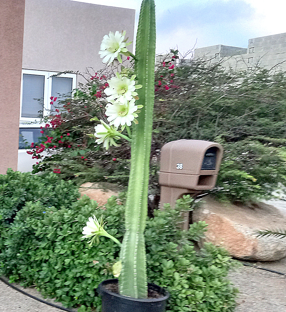 ORANJESTAD (AAN): Ciudadanonan ta raportando e dianan aki, cu nan ta keda encanta pa mira con nan cadushi ta produciendo flor den oranan di atardi y anochi.