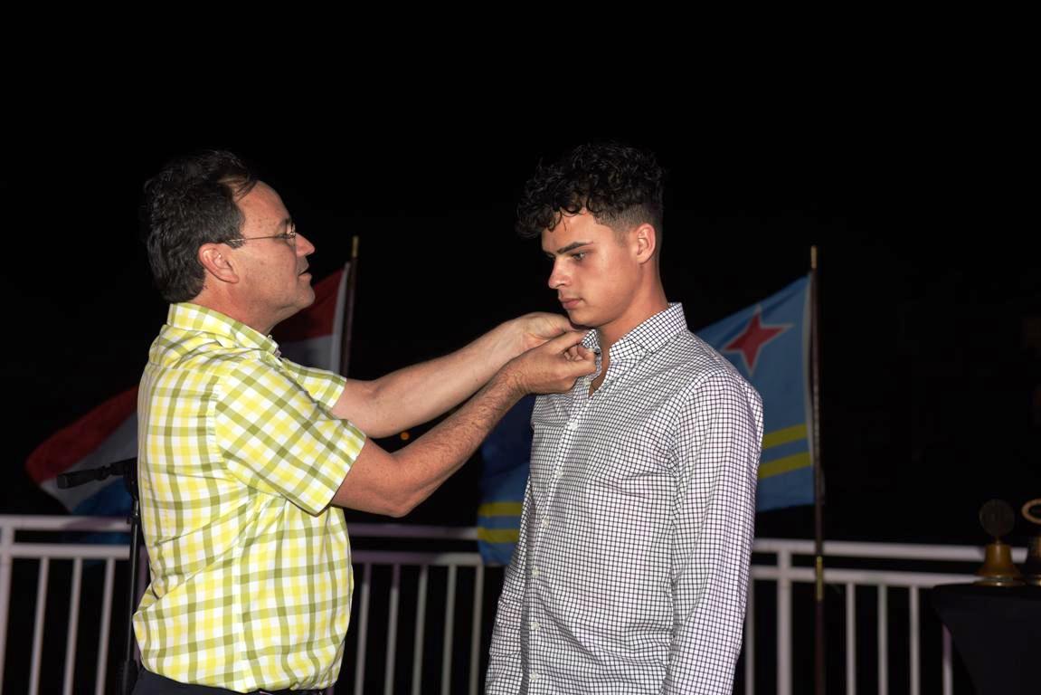 E anochi ceremonial y importante a tuma lugar na Divi Links na unda cu Lufrido Croes, miembro di Rotary Club Aruba y alavez representante di District Governor, tabata presente pa instala e 20 “charter members”. Presidente actual di Rotary Club Aruba, señor Fredrick Nuboer, tabatin e honor di instala e prome presidente di Interact Club of International School Aruba, Benjamin Laclé. Presidente Benjamin na su turno a instala su hunta di directiva cu a wordo eligi door di e 20 alumnonan di International School Aruba, cu tabata interesa pa funda e club aki na nan school.