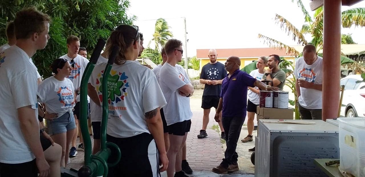 Segun funcionaria Lukee Croes di Fundacion Ambiente Feliz, como parti di e educacion di e Kadetnan aki pa nan bin train y sigui nan educacion na Aruba, a dicidi na yuda Stichting Ambiente Feliz pa caba cu e parti di verf pafo.